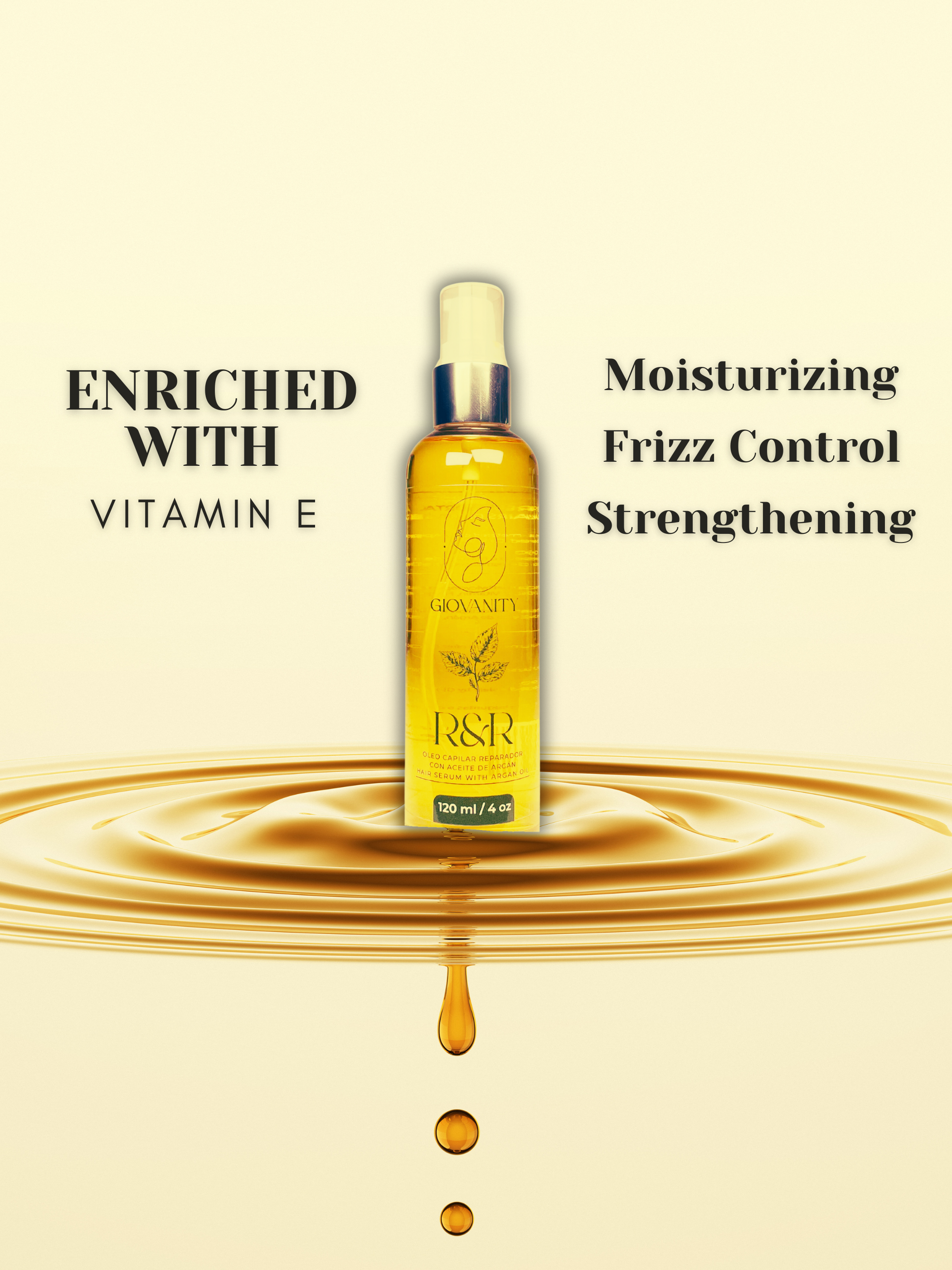 Giovanity Hair Serum with Argan Oil: Cruelty-free & Eco-Friendly 120ml. 4fl oz.